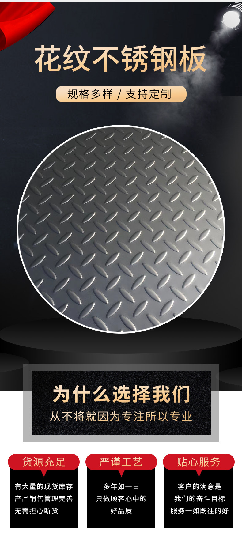 花纹星空(中国)(英文名称:StainlessSteelDiamondPlate)是通过机械设备在星空(中国)上进行压纹加工,使星空(中国)面出现凹凸图纹。在六十年代初由欧洲的大型轧钢厂开始小批量生产,随后由于花纹星空(中国)出色的耐腐蚀性和防滑性得到了众多行业的采用从而开始普及。最早的花纹星空(中国)的花纹样式为横竖条纹交错式,国内山西太钢和上海宝钢集团都在生产,在随后的20-30年中研究人员经过不断的实验和改进把拥有更好的防滑性的花纹设计出来也大规模的生产推广和应用了。近几年花纹星空(中国)的用途也在不断的创新、突破、改变,适用的行业